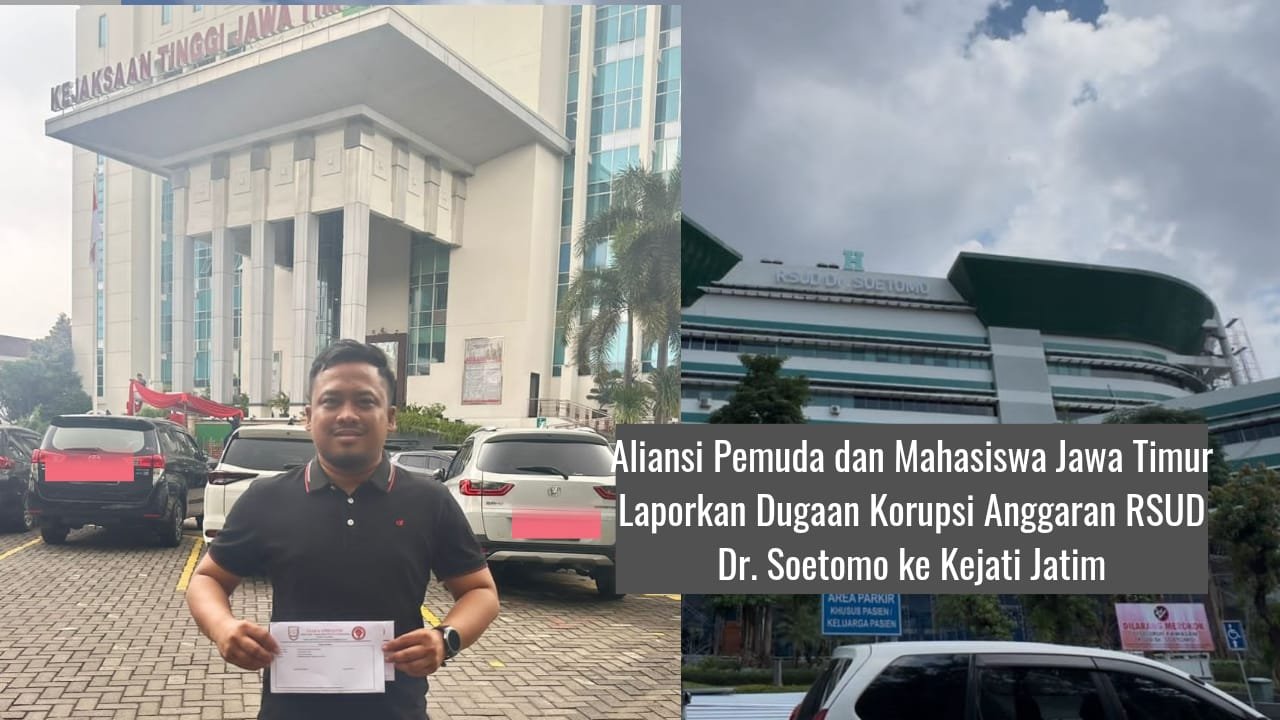 Kesehatan – Radar Nusantara Post , Aliansi Pemuda dan Mahasiswa Jawa Timur (APMP) secara resmi melaporkan dugaan tindak pidana korupsi anggaran yang terjadi di RSUD Dr. Soetomo Surabaya.