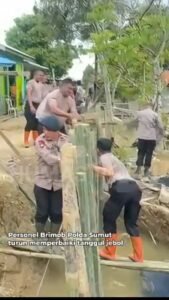 Pantausn Media On Line Rabu 17/12/2025 Polisi dan warga gotong royong menimbun tanah dan memperkuat dinding tanggul agar tidak kembali longsor. Wadanyon-A Pelopor, Kompol Abdul Holid, menyatakan bahwa kegiatan ini merupakan bentuk aksi cepat Brimob Sumut dalam membantu masyarakat terdampak.