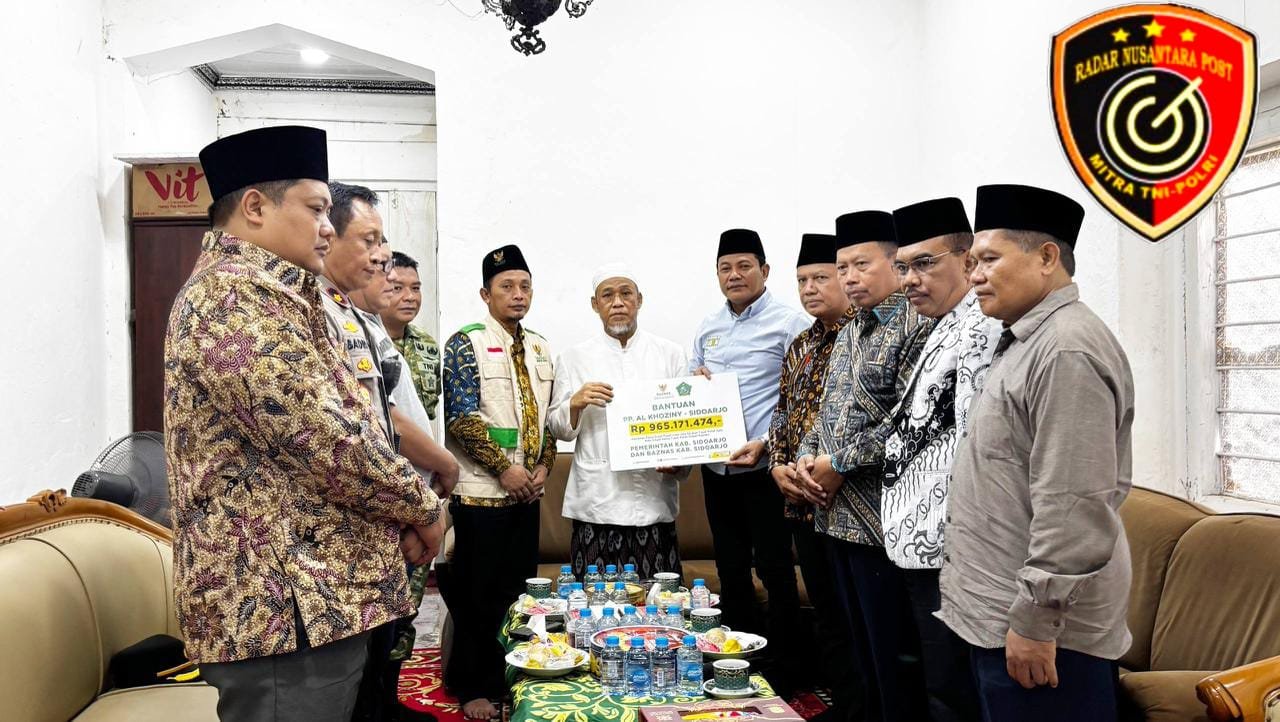 Sidoarjo* Radar Nusantara Post – Bupati Sidoarjo Subandi menyerahkan bantuan kepada Pondok Pesantren Al-Khoziny, Sabtu (22/11/2025). Bantuan sebesar Rp 1,385 miliar itu merupakan donasi dari para ASN Dinas Pendidikan Kabupaten Sidoarjo.
