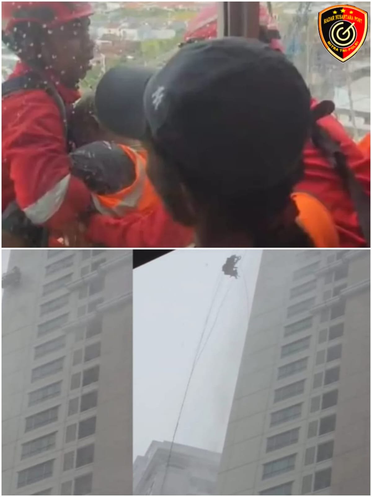 𝗦𝘂𝗿𝗮𝗯𝗮𝘆𝗮, RADAR NUSANTARA POST, – Sebuah insiden mencegangkan terjadi di sebuah apartemen di kawasan Jalan Pakuwon Indah, Lontar, Surabaya, pada Senin (2/3/2026). Seorang pembersih kaca gedung dilaporkan tersapu angin kencang dan bergelantungan di sisi bangunan, sekarat berusaha bertahan.