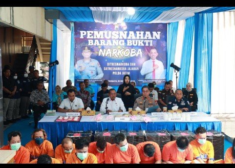 Pada Juni 2025, Polda Jatim memusnahkan 49 kg sabu dan 2.860 butir ekstasi, serta 5.688.600 butir obat keras.