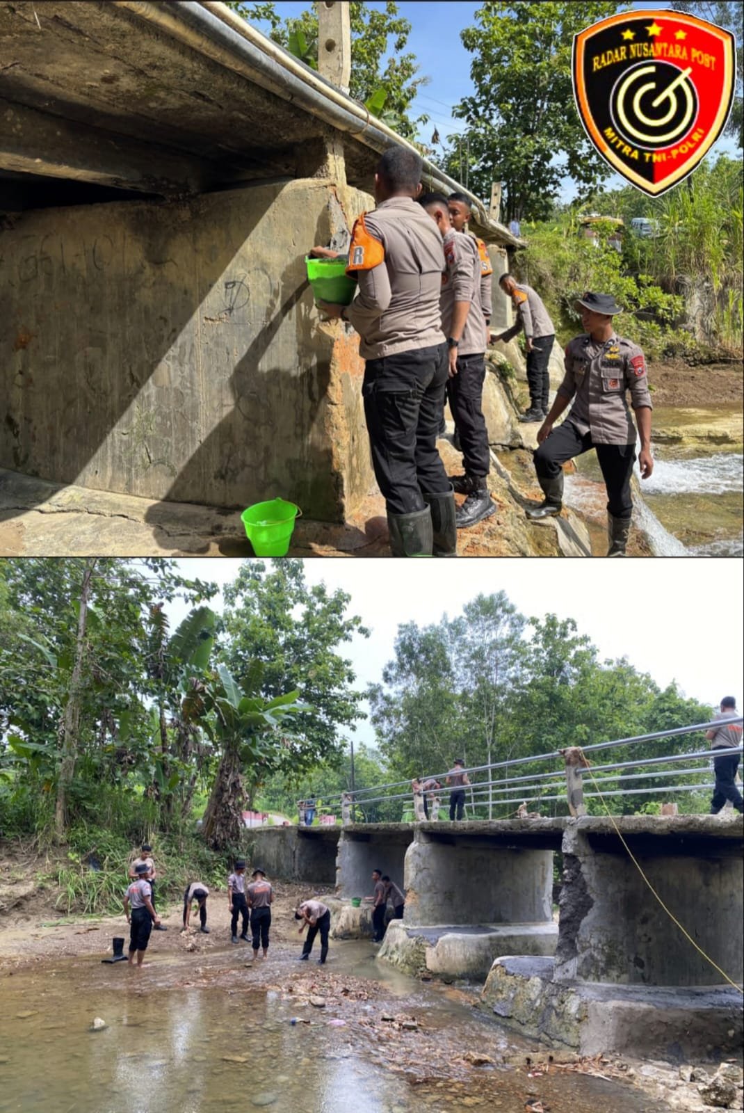 “Perbaikan pagar jembatan sebagai tindak lanjut atas informasi bahwa ada musibah kepala sekolah dan tenaga kependidikan yang terjatuh karena tidak ada pagar jembatan. Sehingga korban menderita patah tulang dan dirawat di rumah sakit,” ungkap Komandan Batalyon D Pelopor Satbrimob Polda Jatim, Kompol Masrukin kepada awak media.