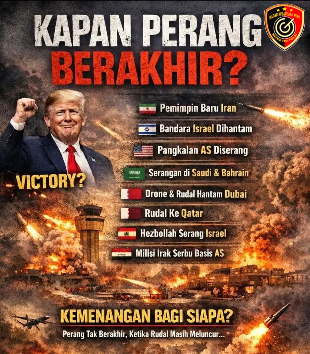 Surabaya, RADAR NUSANTARA POST, – Dua puluh empat jam lalu, Donald Trump berdiri di hadapan kamera dan menyatakan satu kata yang selalu terdengar indah di telinga politik: “Victory.” Kemenangan.