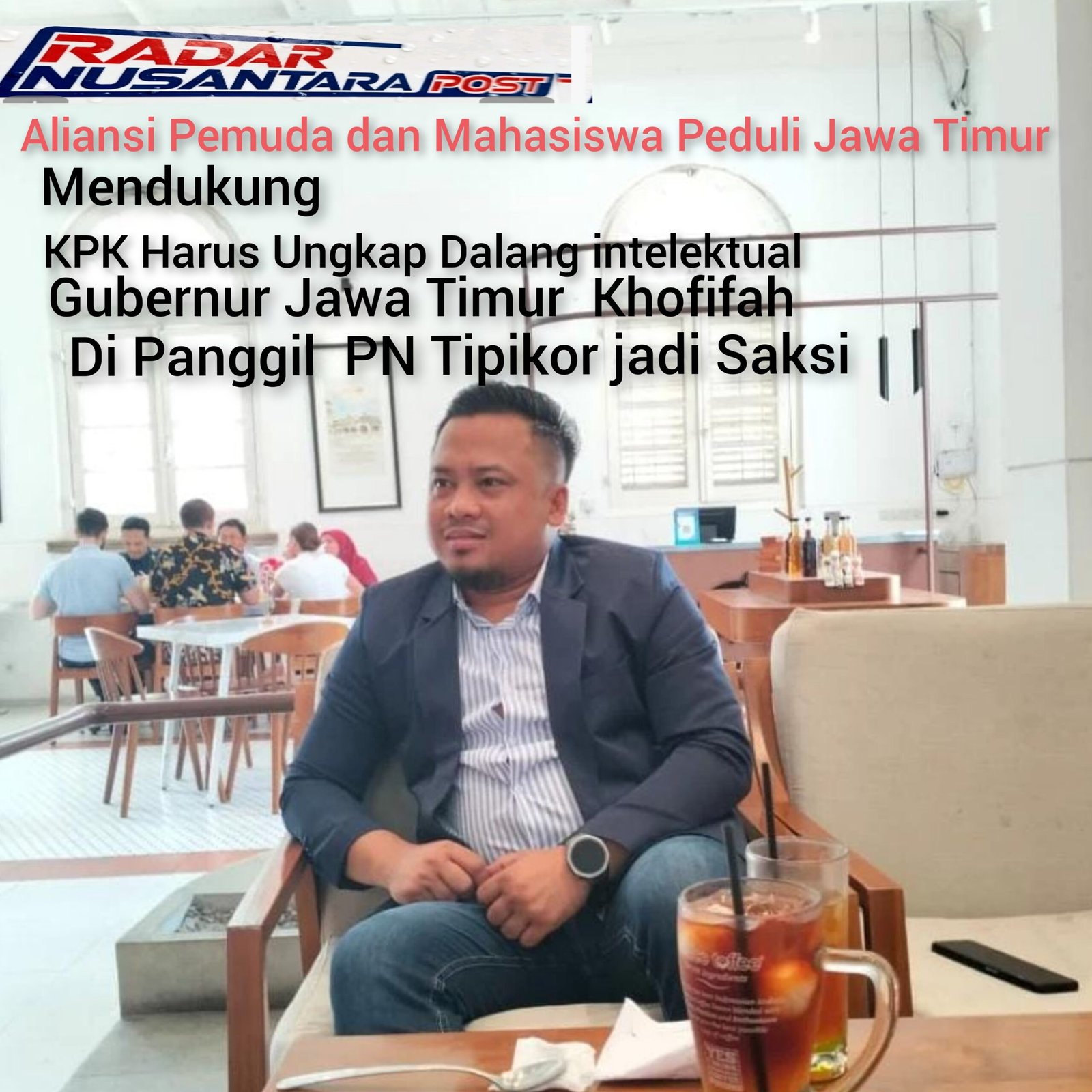 Radar Nusantara Post Surabaya – Ketua Aliansi Pemuda dan Mahasiswa Peduli Jawa Timur (APMP Jatim), Acek Kusuma mendukung, Ketua Majelis Hakim PN Tipidkor Surabaya agar KPK memanggil Gubernur Jatim, Khofifah Indar Parawansa.