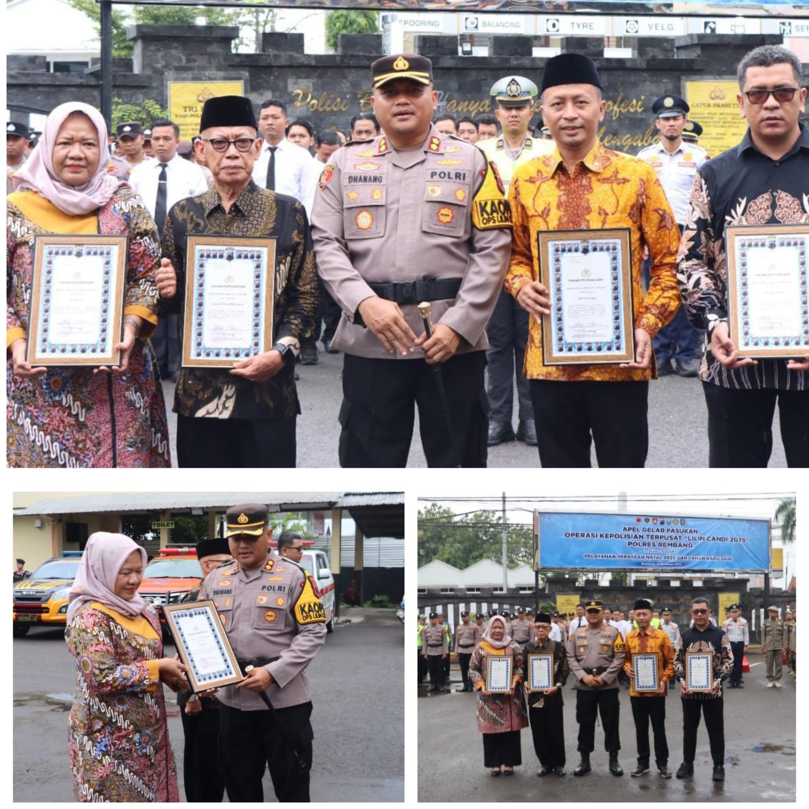 Kapolres Rembang AKBP Dhanang Bagus Anggoro menyampaikan bahwa penghargaan tersebut merupakan bentuk apresiasi Polri kepada warga yang telah menunjukkan kepedulian, keberanian, dan dedikasi dalam pengabdian kepada bangsa dan negara.