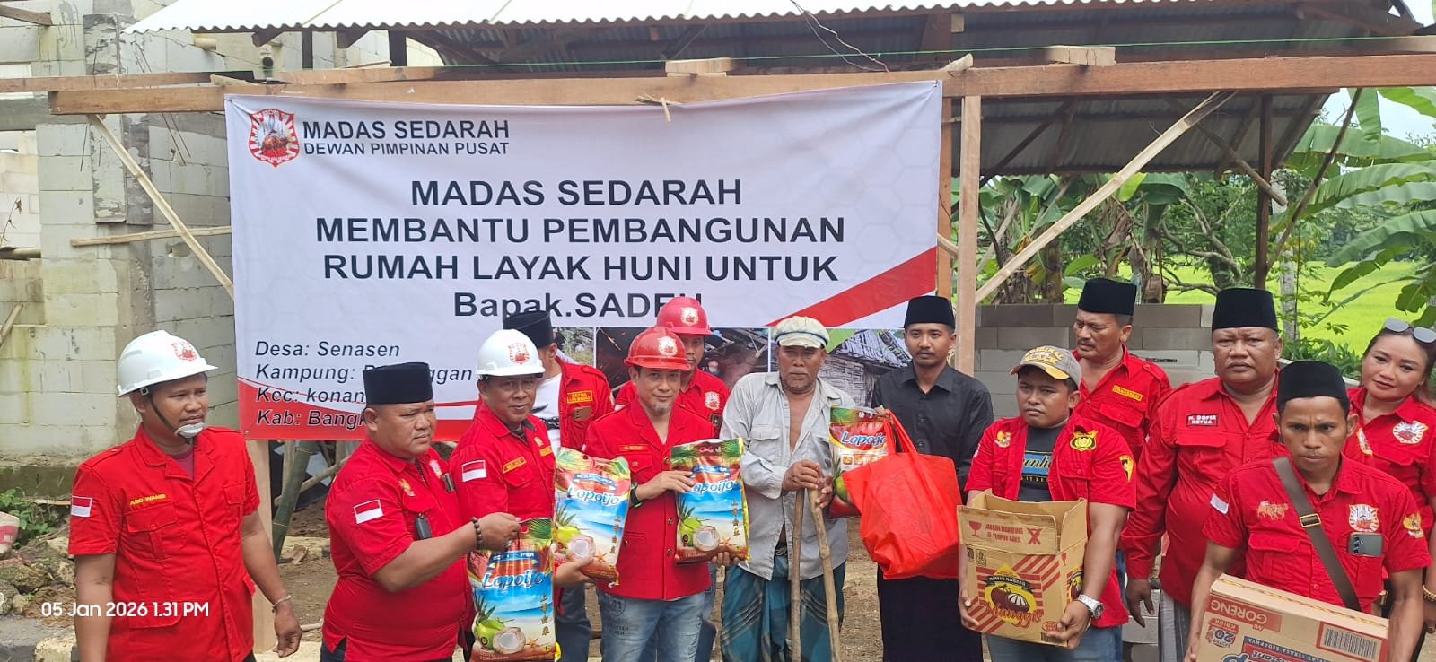 Radar Nusantara post Madura, – radar cnnSenin 05/01/2027Ormas Madas Sedarah yang di ketua M. Yasin Selakau ketau madas dpac Balongpanggang kembali menunjukkan kepeduliannya terhadap masyarakat dengan melakukan bakti sosial membangun rumah baru untuk warga kurang mampu yang tinggal se orang diri.Rumah baru ini dibangun di Desa senasen, Kecamatan, komang, Kabupaten bangkalan madura Jawa timur.