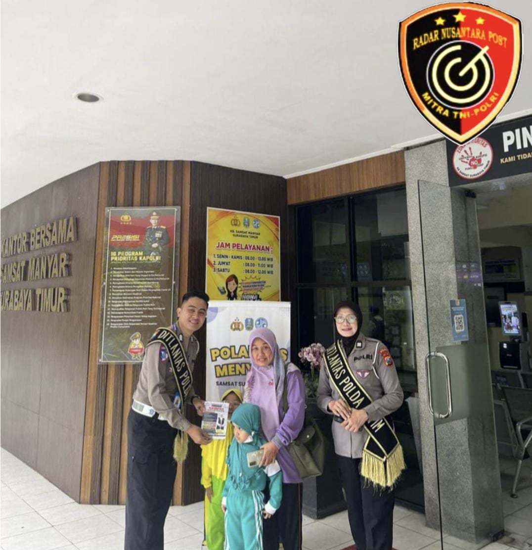 menambahkan bahwa Polri akan terus hadir ke tempat pelayanan KB. Samsat Surabaya Timur. Untuk memberikan pelayanan secara efektif/humanis