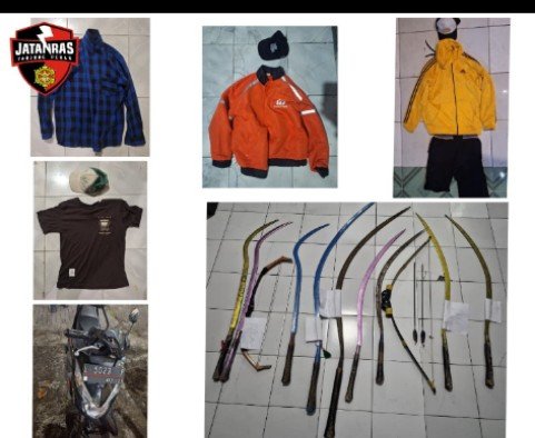 Saat diinterogasi, tersangka AD mengakui jika ia juga menyimpan sajam milik kelompok gangster ini. Polisi menyita sembilan celurit dan dua busur panah dari basecamp mereka.