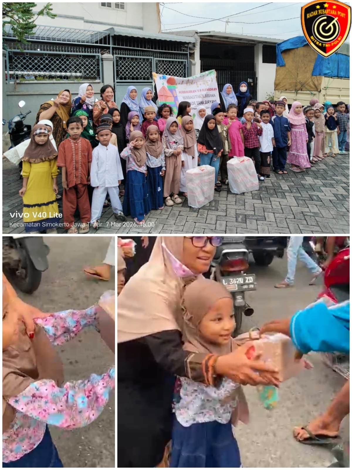 Surabaya, RADAR NUSANTARA POST, – Suasana hangat dan penuh kebersamaan terlihat di Jalan Raya Sidoyoso, Kecamatan Simokerto, Surabaya, pada Sabtu (7/3/2026) sore. TK Ade Erma Suryani menggelar kegiatan sosial dengan membagikan ratusan paket takjil kepada para pengguna jalan yang melintas.