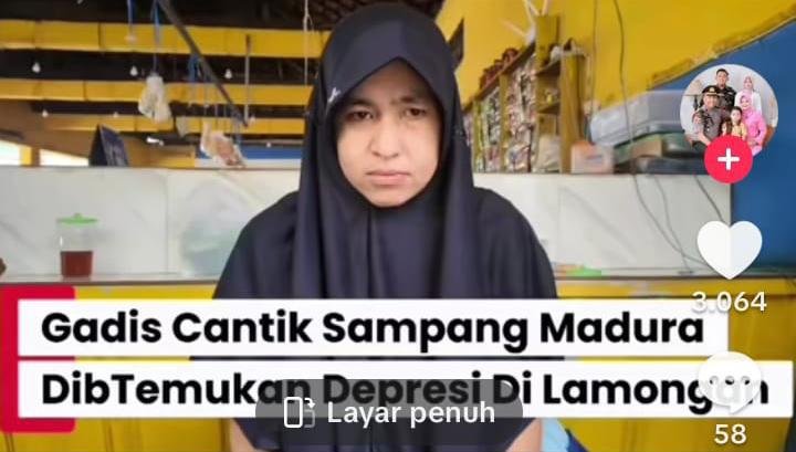 Dalam akun TikTok tersebut menjelaskan bahwa telah menemukan di daerah Lamongan, perempuan berjilbab berparas cantik yang mengaku dari Sampang Madura, bernama Dewi Lestari.